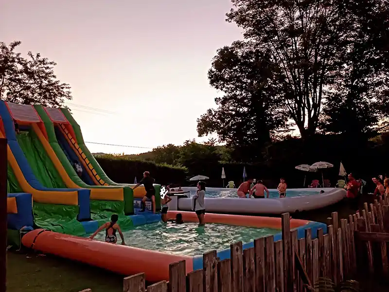 En juillet/août, le Camping 3 étoiles Castanhada en Ardèche, met à votre disposition un espace AQUA’LUDIQUE avec 2 toboggans de 6m et son bassin de réception indépendant et un bassin de détente et nage de 11m x 9m x 60 cm