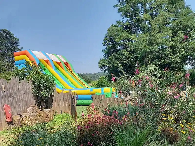 En juillet/août, le Camping 3 étoiles Castanhada en Ardèche, met à votre disposition un espace AQUA’LUDIQUE avec 2 toboggans de 6m et son bassin de réception indépendant et un bassin de détente et nage de 11m x 9m x 60 cm